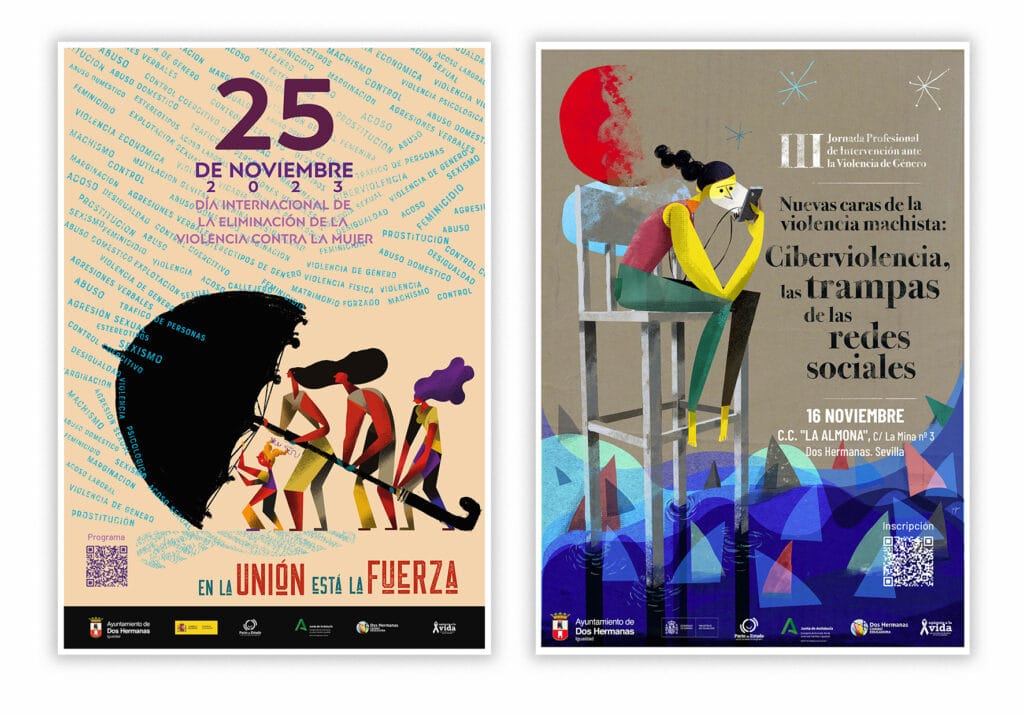 El último año marcó tiempos peculiares con recortes de derechos y cuestionamientos a lo que dábamos por sentado. La Delegación de Igualdad en Dos Hermanas me seleccionó para encargarme de la campaña gráfica institucional del «25N».